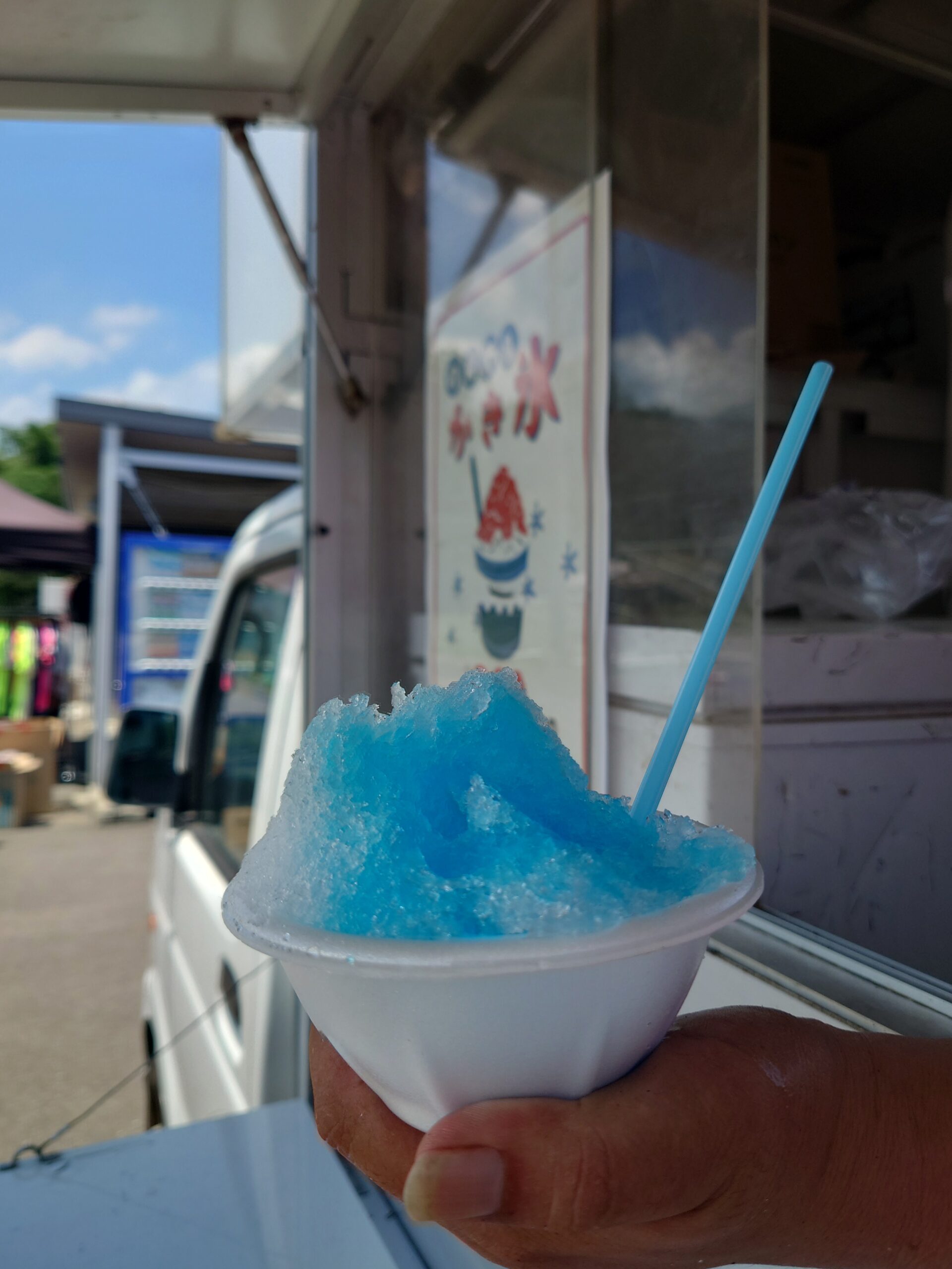 キッチンカーでは、ベビーカステラやかき氷、アイスなど、試合の休憩や暑さを和らげる品が用意されており、私たちもいただいてきました。