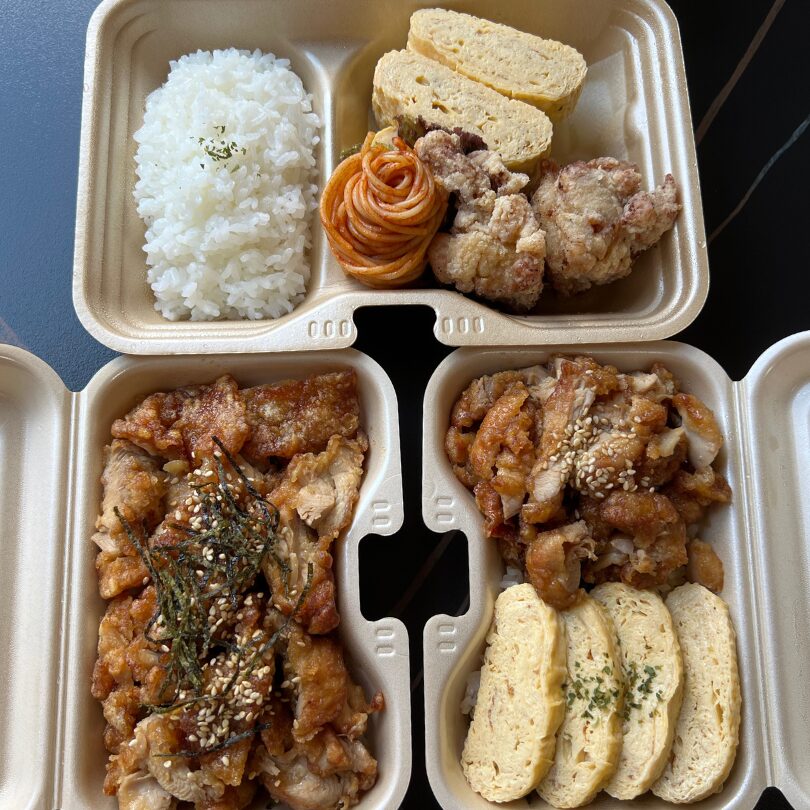 三豊市と観音寺市は10食以上・前日予約で無料配達OK。アレルギーも相談可。店頭では焼き鳥を焼いていて、店内にはお弁当以外にお惣菜やスイーツもあってお買い物も楽しいお店。土日祝は営業しているので、サッカー帰りにごはんを買って帰るのもおすすめ!